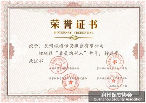 8月30日,泉州市鲤城区税务局开元分局领导莅临泉州纵横保安公司参观调研,亲自向泉州纵横保安公司总经理洪建家颁发了鲤城区最美纳税人荣誉证书。 参观调研中,泉州市鲤城区税务局开元分局领导一行还参观了泉州纵横保安公司党员活动室、党员先锋岗和企业党建文化墙,听...