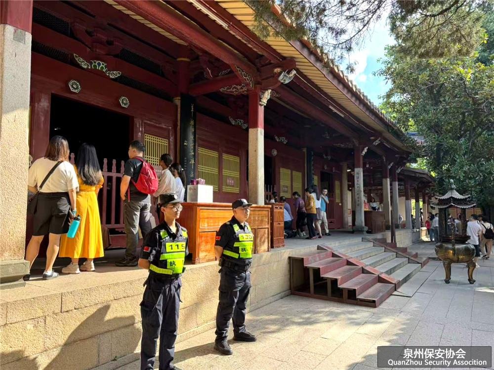 在市直机关升国旗仪式现场,执勤人员提前就位,对仪式核心区、出入口实施不间断值守巡控,通过现场警戒、人流疏导等方式,严防拥挤踩踏等安全风险,守护仪式庄严秩序;在泉州古城区、清净寺、天后宫、清源山风景区、泉州海峡体育馆、东海浔埔渔人码头和晋江梧林村落等热门旅游景点、地标与古城重点区域实行“定点值守+动态巡逻”模式,针对客流关键节点科学布岗,通过劝导违规摆摊、协助规范停车、疏导游客等举措保障道路畅通,实时响应突发情况,有效消除安全隐患。