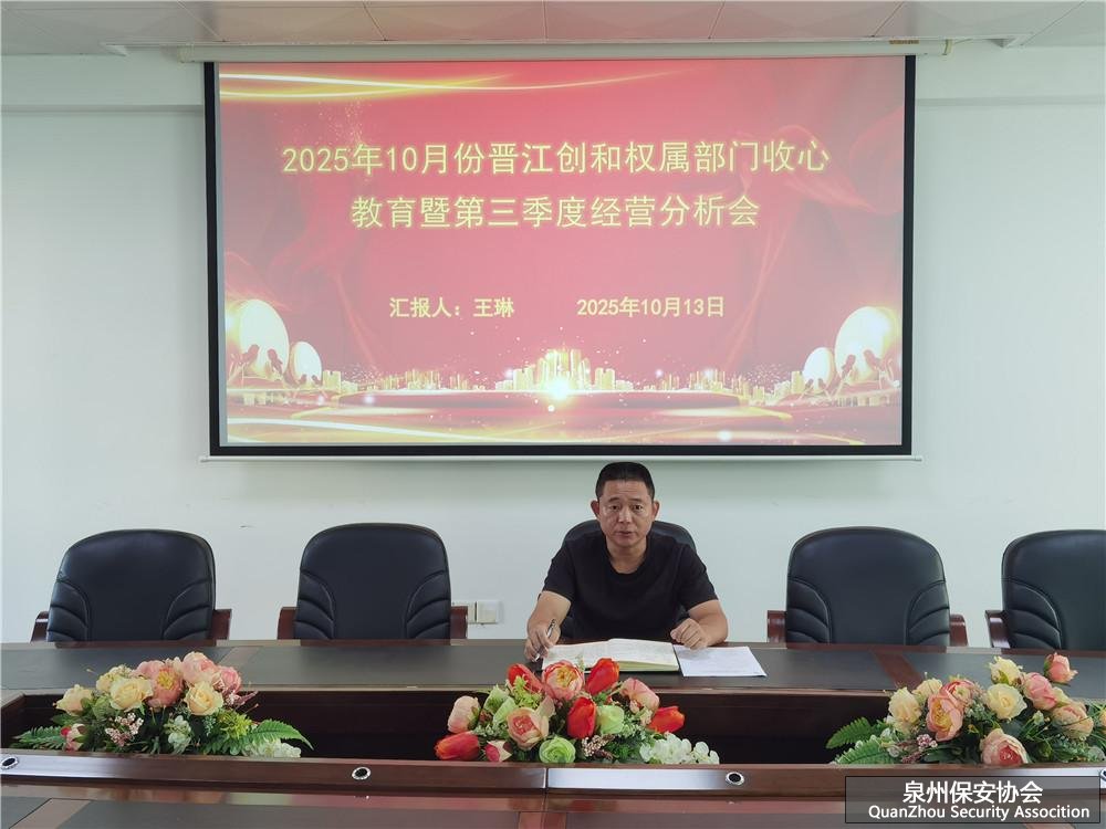 节后归位鼓干劲,复盘部署谋新篇。2025 年 10 月 13 日,晋江市创和保安服务有限公司在办公大楼七楼党建室召开 “权属部门收心教育暨第三季度经营分析会”,权属部门管理骨干齐聚一堂,以 “收心 + 复盘” 双轨并行模式,为第四季度冲刺及全年目标达成吹响集结号。