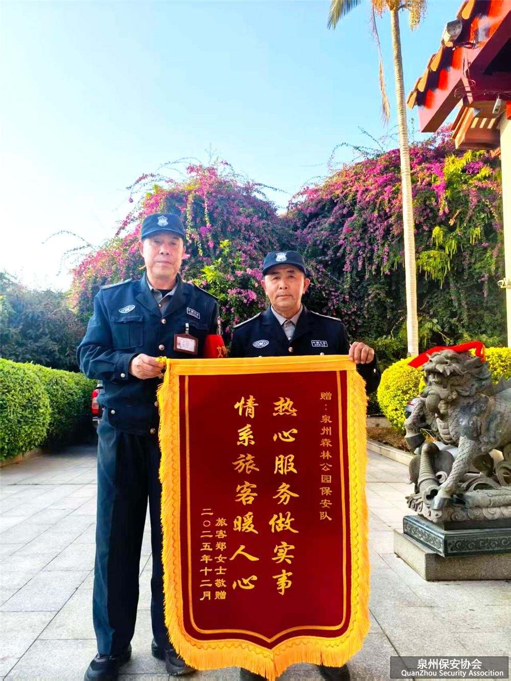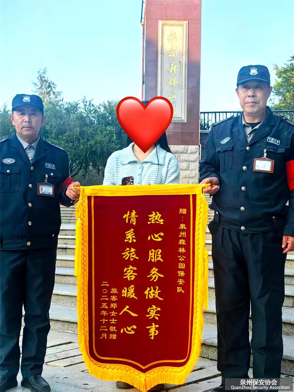 ¶ÔÓÚ×ݺᱣ°²×¤ÈªÖÝÉÁÖ¹«Ô°µÄÖ´ÇÚ¶ÓÎéÀ´Ëµ£¬ÊØ»¤Óο͵ÄËæÉí²ÆÎï¡¢°ïÖú´ó¼Ò½â¾ö¼±ÄÑʶù£¬ÊÇÖ°ÔðËùÔÚ£¬¸üÊÇʹÃüËùÈ»¡£ÕâÃæ½õÆì£¬²»½öÊǶÔ×ݺᱣ°²¹¤×÷µÄ¸Ðл£¬¸üÊǶÔÎÒÃÇ“ÓÃÐÄÊØ¸Ú¡¢Õæ³Ï·þÎñ”µÄ¼¤Àø¡£Íùºó£¬×ݺᱣ°²»á¼ÌÐøÒԸ߶ȵÄÔðÈθУ¬Õ¾ºÃÿһ°à¸Ú£¬»¤ºÃÉÁÖ¹«Ô°ÀïµÄÿһ·Ý°²ÐÄ¡£