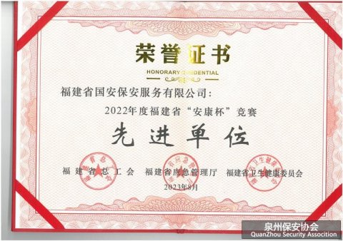 近日,福建省安康杯竞赛组织委员会通报表扬了2022年福建省安康杯竞赛活动先进集体和优秀个人,福建省国安保安服务有限公司荣获2022年福建省安康杯竞赛先进单位荣誉称号。 竞赛中,公司广泛开展安全生产和疾病防治活动,进一步提高了职工安全生产意识和健康综合素质,促...