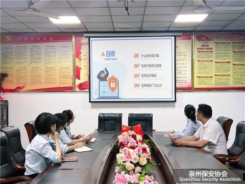 为贯彻落实泉州市公安局丰泽分局关于防范电信网络诈骗犯罪工作的部署,进一步夯实公司职工防范电信网络诈骗意识和识骗能力,10月25日上午,福建省海丝保安服务有限公司本部组织办公室相关人员学习防范电信诈骗知识,并指导大家下载国家反诈中心APP,有效提高安全防范意...