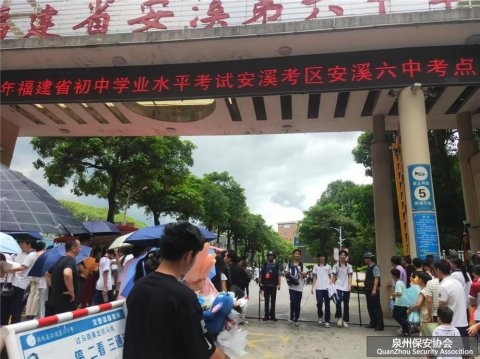 2025年6月19日至21日中考期间,福建省安盾保安服务有限公司为安溪县12个中考考点提供专业化安保服务,保障中考考生顺利应考。 考试期间,安保人员配合考点工作人员严格执行入口证件核验与安全检查,配置金属探测设备与智能测温仪;同步开展交通疏导与秩序维护;设立便...
