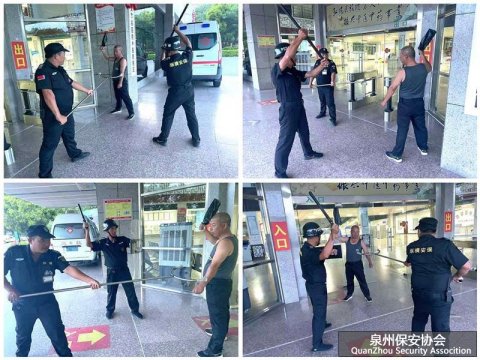 为进一步巩固提升驻点队伍的反恐防暴工作和应急处置能力,近日,泉州纵横保安公司在驻点单位南安市中医院,对该驻点保安人员进行了一场反恐防暴专项培训和演练。 培训中,泉州纵横保安公司的职业技能培训教官讲解了盾牌、警棍、防暴叉等专用反恐防暴器材的使用方法、安...