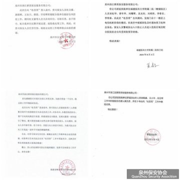 近日,泉州洛江群英保安公司陆续收到了来自福建医科大学附属医院泉州二院、泉州洛江公安分局派出所保安队等客户单位的表扬信和感谢谢。表扬公司保安员在抗击今年第5号台风杜苏芮中忠于职守、履职尽责、任劳任怨,最大限度减少了自然灾害带来的损失。 其中一份感谢信中...