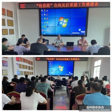 8月1日上午,南安武荣保安积极落实上级部门的灾后恢复重建工作部署,召开第五号台风杜苏芮灾后恢复重建工作推进会。公司总经理王金虎、副总经理李建忠、警务代表江成绩及全体管理人员参加。 今年第五号台风杜苏芮在泉州的晋江正面登陆,引发强降雨及内涝我市也受到波及...