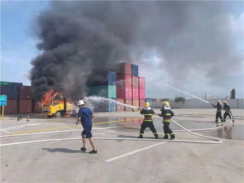 8月9日,中鑫驻江阴码头队员在巡逻时闻到有一股烧焦的味道,于是抬头察看周边,发现码头有一辆大型货车油箱处冒烟并有火花窜出。 不好,有车子着火了!队员立即取出灭火器飞快地跑向着火的货车。并及时通知了消防队。他们迅速找到起火源头,拔保险销、握压把...