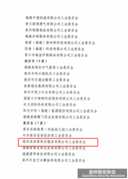 近日,泉州市总工会印发《关于命名泉州市模范职工之家、模范职工小家的通知》,惠安县剑盾保安服务有限公司工会委员会获评泉州市模范职工之家。 惠安剑盾公司工会自成立以来,坚持以习近平新时代中国特色社会主义思想为指导,在...
