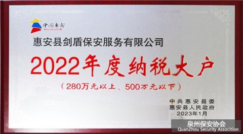 近日,惠安县委、县政府授予惠安县剑盾保安服务有限公司2022年度纳税大户称号,表彰公司在积极承担社会责任、促进地方经济发展作出的贡献。 2022年,惠安剑盾公司深入贯彻落实县委县政府、国资委的工作要求,持续推进公司各项工作高效能管理、高效率运行、高质量发展,...