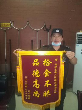 9月28日,海丝保安驻派东海二院警卫室收到一份不一样的快递,打开里面是一面锦旗,上面写着:赠 福建东海二院海丝保安大队 拾金不昧,品德高尚。送锦旗的人叫张龙敬,原来是我司保安尹洪做了这样的暖心事 2020年9月17日14:30分左右,海丝保安驻派东海二院保...