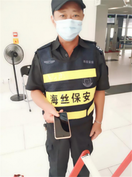 9月2日上午10点20分左右,海丝保安驻派东海二院保安员王华生在门诊服务大厅巡逻执勤时,在一个柱子的转角处捡到一部手机和一张医保卡,因为手机屏幕有密码打不开,王华生只好在原地等失主来寻,等了半个小时也没看到失主的影子,于是将手机带到值班室并上报...