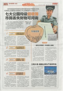 十天前,梁先生带女儿到刺桐公园跑步,不慎将钱包遗失,没想到一周后接到我司保安员的电话,钱包失而复得,梁先生本来打算重金酬谢,被我司保安员谢绝后,通过东南早报专栏向公园管理处、我司保安员及拾到者表示感谢。 我司驻派刺桐公园保安队长陈长卿介绍说...
