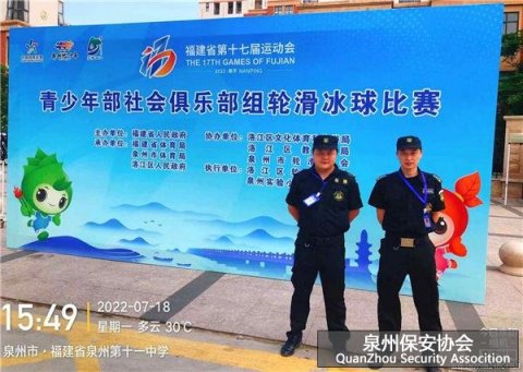 近日,福建省第十七届运动会青少年部社会俱乐部轮滑冰球比赛正式开赛。为确保比赛顺利进行, 泉州纵横保安公司结合赛事场地实际情况,提前制定安保工作方案,精心组织, 圆满完成了省运会轮滑比赛安保工作任务 。 赛事期间,正逢夏季高温天气, 泉州纵横保安公司的保安...