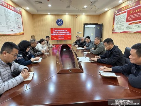 为深入贯彻落实中国保安协会《倡议书》精神,按照省保安协会工作部署,2月21日上午,泉州市保安协会召开宣传贯彻中国保安协会《倡议书》座谈会,市保安协会、市公安局治安支队、部分县市区治安大队领导及保安公司代表参加会议。 会议首先传达学习中国保安协会《倡议书...