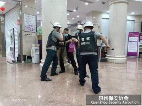 2022年6月28日,石狮市狮城保安服务有限公司广大银行保安中队开展防暴演练。 演练开始,一名身穿黑色衣服的歹徒,携带着刀具从大门外,急匆匆地跑到柜台挟持了一名正在领取现金的顾客,保安员立刻启动应急预案,第一时间报警并拉响警报,同时装备好警棍、钢叉、盾牌等...