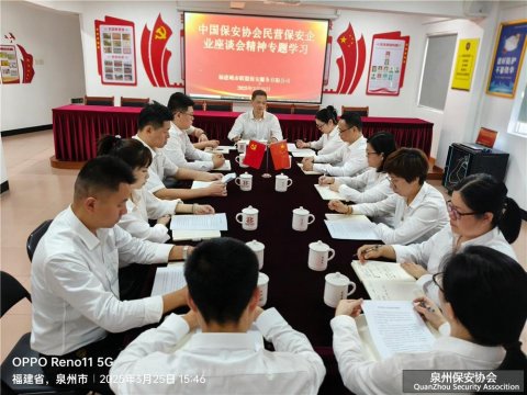 2025年3月25日,福建城市联盟保安服务有限公司召开专题学习会议,深入传达贯彻3月20日中国保安协会民营保安企业座谈会精神。公司领导、各部门负责人及骨干员工代表参加会议,会议由总经理詹江山主持。 会上,詹江山总经理首先通报了中国保安协会座谈会的核心内容和指导...