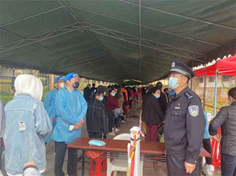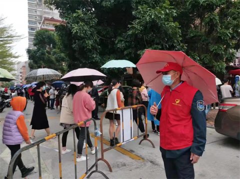 我是党员,我申请晚上参加社区核酸检测。核酸检测请往这边走!请出示个人条形码!请大家戴好口罩,保持一米距离排队!22日凌晨,在社区核酸检测点现场,由职工、入党积极分子、党员组建的惠安剑盾保安服务有限公司志愿服务队分工协作,整理现场物品、引导居...