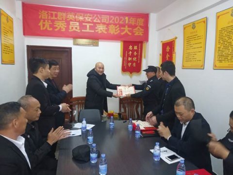 1月22日,泉州洛江群英保安公司召开2021年度优秀员工表彰大会,公司苏总经理、林副总经理、保安部、综合部、业务部及获奖的优秀班组代表、优秀中队长、优秀保安员、宣传先进个人共15人参加,表彰大会由综合部纪主任主持。 表彰会共分四项议程:首先由公司林...