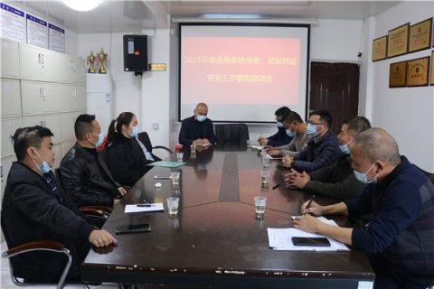 1月11日上午, 泉州洛江群英保安公司在办公室召开岁末年初安全工作部署会,公司苏总经理、林副总经理、保安部、综合部等部门负责人参加。 会上,公司林副总经理梳理了2021年公司在开展安全检查、临时安保、维稳处突中安全工作情况,随后,苏总经理强调三点要...