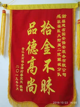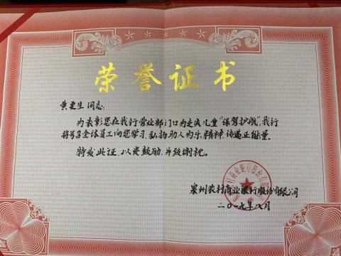 拾金不昧风格高、服务周到品格好。2019年11月31日,黄先生持着一面红彤彤的锦旗,走进了平安银行惠安支行,近万元现金在银行遗失后复得,支行保安员黄龙山拾金不昧的高尚行为和优质的服务让他倍感温暖。 2019年11月15日上午,银行保安员黄龙山在支行自助取款...