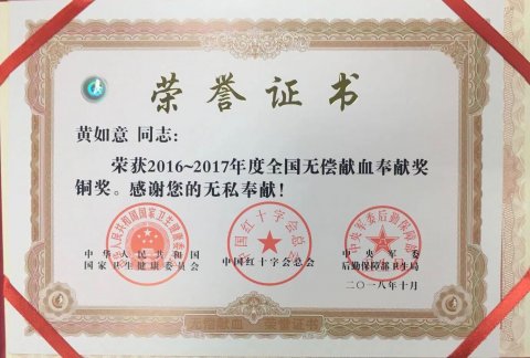 近日,石狮市保安服务公司押运分公司黄如意同志荣获2016-2017年度全国无偿献血奉献奖铜奖。 黄如意同志从2003年就开始献血,至今已组织、参与无偿献血20多次,累积献血已近6000毫升。黄如意表示,他每年坚持献血已成为了习惯,特别是自己作为一名押运人员,...