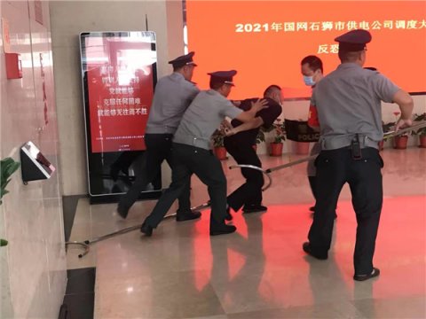 2021年6月18日下午3时,石狮市狮城保安服务有限公司派驻供电公司保安中队开展2021年调度大楼反恐演练。 据悉,本次演练队伍由5名队员组成,一名扮演歹徒,其余人员扮演值班人员。演练开始后,一名歹徒带着刀具急匆匆地走向大楼,门口值班队员发现问题,便告...