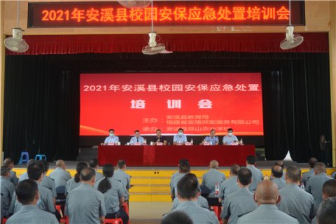 安溪县校园保安员完成年度安保应急处置培训活动 5月22日,福建省安盾保安服务有限公司与安溪县教育局、安溪县公安局联合举办的校园保安员年度校园安保应急处置培训会在安溪县慈山农业学校举行,220名公立学校和44名民办幼儿园保安员接受了培训。 在动员会上...