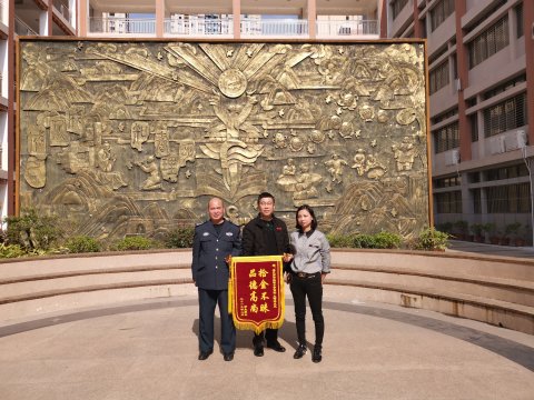 2019年3月12日上午,保安员王阿浮在晋江市第四实验小学被群众赠与了锦旗。当他接过拾金不昧 品德高尚的锦旗时,脸上洋溢着开心的笑容,围观的师生纷纷竖起大拇指。 据悉,王阿浮是晋江保安公司派驻晋江市第四实验小学的保安员。2019年2月27日下午5时10分左右...