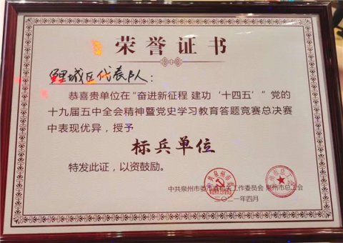 4月16日,由中共泉州市委市直机关工作委员会、泉州市总工会联合主办,泉州市广播电视台协办的学习党的十九届五中全会精神暨党史学习教育答题竞赛活动现场总决赛,在泉州电视台演播厅圆满闭幕。集英守押党支部党员黄金珍、黄培全同志参与组队代表鲤城区参赛,...