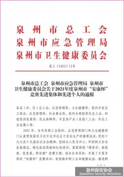 近日,泉州市总工会、泉州市应急管理局、泉州市卫健委发文表彰一批2021年度泉州市安康杯竞赛先进集体和先进个人。福建省中安保档案管理服务有限责任公司荣获2021年度泉州市安康杯竞赛先进集体单位称号。 中安保档案管理公司聚焦行业企业特点,以知识竞赛、献言献策、应...