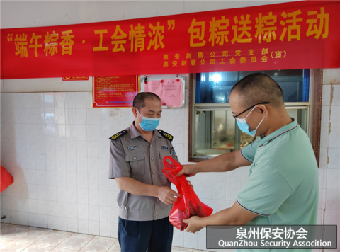 为更好的服务广大职工,增强企业凝聚力,积极培育和践行社会主义核心价值观,让员工群众感受中华民族传统节日文化氛围和工会娘家人大家庭的温暖。惠安县剑盾保安服务有限公司工会委员会联合公司党支部在端午节期间组织开展以端午粽香工会情浓为主题的包粽子送温暖活动...