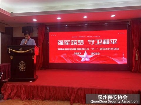为庆祝中国人民解放军建军95周年,同时扎实做好节日期间拥军优属工作,弘扬军人优良传统,充分体现我司对退役军人的关怀,发挥退役军人的正能量。7月31日晚,建军节前夕,福建省海丝保安服务有限公司在泉州酒店召开强军筑梦,守卫和平庆八一老兵茶话会,公司董事长王建...