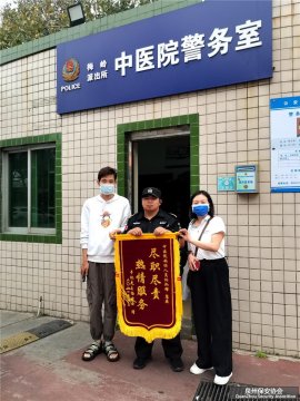 4月18日,集英集团权属泉州集英保安公司晋江分公司派驻晋江市中医院保安执勤班组收到失主杨女士送来的一面印着尽职尽责 热情服务八个大字的锦旗。 原来,杨女士在急诊科一楼新病房遗失了一部手机。她请求当班保安员帮忙寻找。当班保安员林灿锋耐心地接待了杨女士,并立...