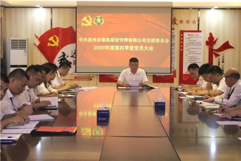 11月5日,中共泉州市集英保安守押有限公司支部委员会召开2020年度第四季度党员大会。集英集团副总经理、集英守押公司党支部书记、总经理庄能平,全体党员、发展对象参加此次会议。会议由支部书记庄能平同志主持。 会上,发展对象董小燕同志、祁铭毅同志宣读...