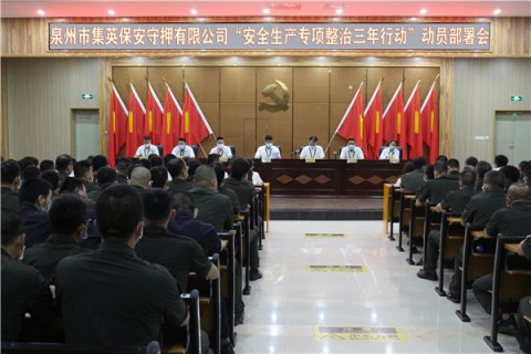 8月3日晚,泉州市集英保安守押有限公司在总部办公楼七楼会议室召开安全生产专项整治三年行动动员部署会。公司党支部书记、总经理庄能平,集英金融服务、中安保档案管理等权属公司负责人,全体服务岗、勤务岗人员参加动员部署会。 会议首先传达了《泉州市集英...