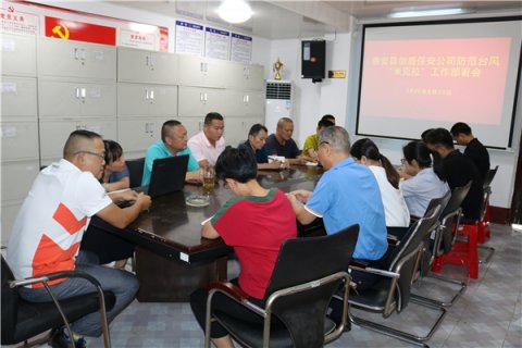 8月10日下午,泉州洛江群英保安公司召开会议部署台风米可拉防御工作,公司苏总经理、保安部、综合部、发展部等部门负责人参加,会议由林自冬副总经理主持。 会上,苏总经理听取了各部门防御台风准备工作,对防抗台风工作提出四点要求: 一要克服麻痹思想,积...