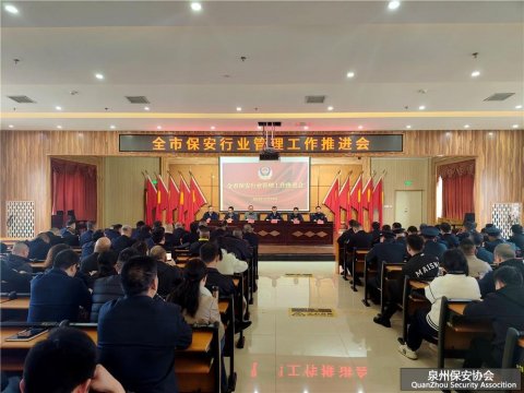 为进一步推动我市保安服务行业高质量发展,12月25日上午,泉州市公安局召开全市保安行业管理工作推进会。市公安局治安支队支队长杨福兴、市总工会、市人社局、市保安协会领导,各分、县(市)公安局分管局领导和治安大队负责人、全市保安企业负责人以及在第四届全市保安...
