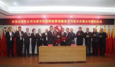 --中安保档案管理公司与平潭综合实验区保安 服务公司举行设立合资公司签约仪式 1月7日,福建省集英保安集团有限公司下属公司福建省中安保档案管理服务有限责任公司与平潭综合实验区旅游集团有限公司权属子公司平潭综合实验区保安服务有限公司举行设立合资公...