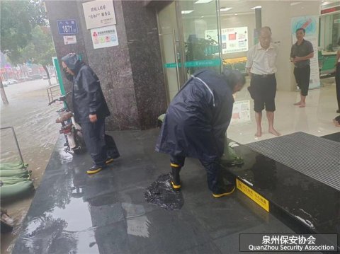 据了解,6月3日上午,我市突降特大暴雨,道路积水严重,积水蔓延到门口台面。农业银行石狮支行保安中队长陈为远看到此情况立即组织值班队员做好防汛应急工作,陈队长和队员们在第一时间将沙袋依次运到农行办事大厅门口,及时地筑起一道防水线,有效地防止水源蔓延到大...