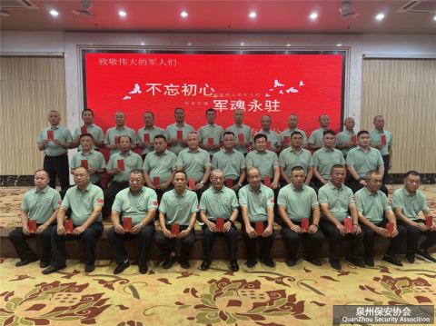 为弘扬拥军崇军的光荣传统,营造关爱老兵的浓厚氛围,8月1日,福建省海丝保安服务有限公司在泉州金星酒店组织开展不忘初心,军魂永驻老兵茶话会。公司董事长王建清、总经理孙惠东、副总经理叶亚志、公司退伍老兵代表出席本次茶话会,共计七十余人,大家共话军旅生涯,...