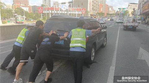 2024年7月4日中午1点,在南安石井的街道上,国安保安驻石井交通劝站队员如往常一样坚守在自己的岗位上,认真履行着职责,维护着交通的顺畅与安全。忽然,一辆汽车在道路中央突然抛锚,瞬间造成了交通的拥堵。正在执勤的交通劝导队员们第一时间发现了这一情况。他们没有...