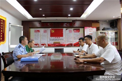 6月19日下午,泉州市公安局鲤城分局治安大队副大队长蔡清明一行到集英集团权属鲤城金盾公司检查指导工作,公司领导班子参加座谈。 蔡清明一行深入了解公司证照管理、服务经营水平及安全生产工作等方面内容,并对公司保安管理工作提出要求: 一要 积极发挥一体化巡防应急...
