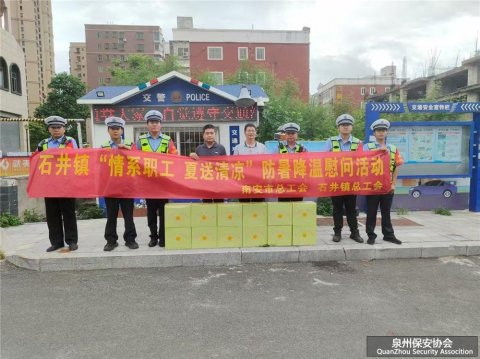 近日,南安市总工会领导一行顶着烈日,来到石井镇各主要交通路口,看望慰问在此执勤的国安保安派驻石井交通劝导队队员,为他们送上防暑降温物资和工会组织的关怀与敬意。 炎炎夏日,路面温度居高不下,劝导队员们身着制服,坚守在车流穿梭的路口,有条不紊地引导行人、...