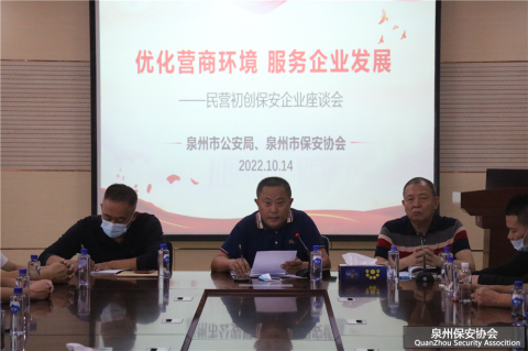 为贯彻上级深化放管服改革部署,落实强产业、兴城市战略要求,2022年10月14日上午,泉州市公安局、泉州市保安协会召开民营初创保安企业座谈会,市局治安支队五大队大队长、市保安协会副会长陈文杰,市保安协会秘书长柯富森及全市30余家民营初创保安企业代表出席。 座谈...