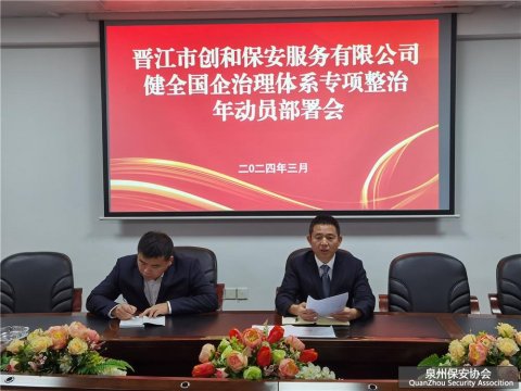 为落实国有企业治理体系和治理能力现代化,不断提升治理体系的系统性、正规性和有效性,根据晋江建投控股集团落实健全国企治理体系专项整治年工作实施方案及部署要求。2024年3月21日晚,晋江市创和保安服务有限公司组织召开健全国企治理体系专项整治年动员部署会。权属...