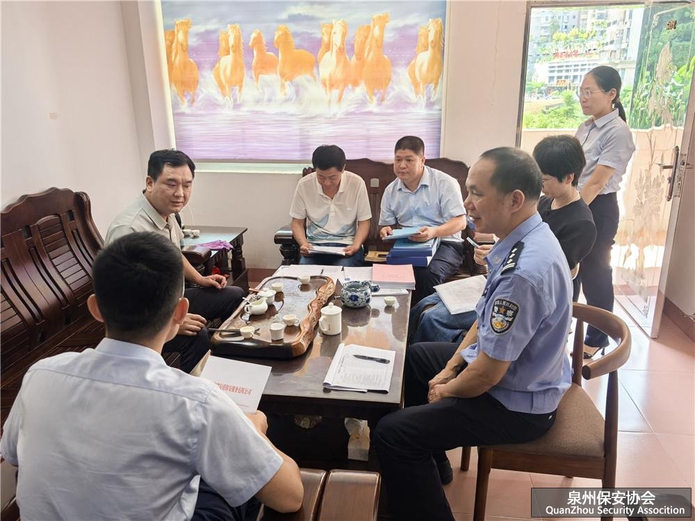 2025年10月15日上午,泉州市公安局民警王文锋、泉州市市场监督管理局龚彬、安溪县公安局民警黄阳红带队到福建省安盾保安服务有限公司进行“双随机”抽查工作,公司总经理廖宏疆、副总经理王茂源、许世旭等人陪同检查。检查组成员通过随机抽检、实地考察、查阅档案等方式,对公司基本情况、保安服务合同和监控影像资料留存、保安员资质管理、押运人员安全管理制度等进行了全面检查。