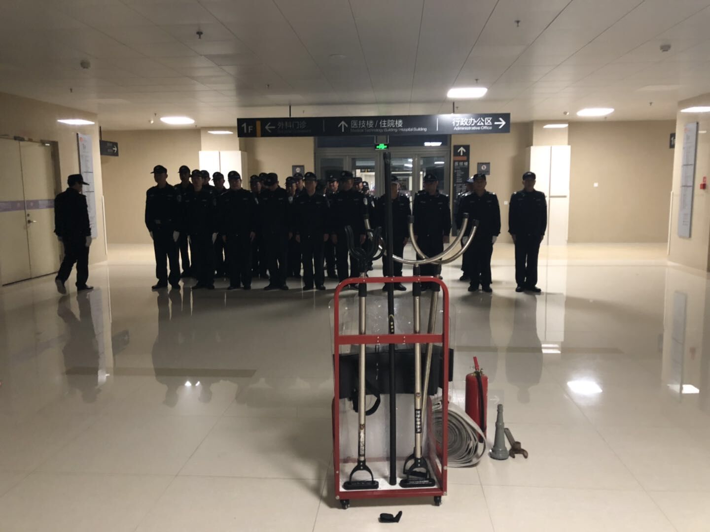 集训期间,教官强调了掌握反恐防暴技能的重要性,并从规范队列站姿、强化出入登记、加强监控预警、一键报警器启动、器械合理使用等相应的“人防、物防、技防”防范手段进行详细讲解,明确了应对恐怖分子的正确处置流程。市医院保安队按照既定计划依次进行医院安保工作手册理论学习、队列站姿训练以及消防安全专项培训,进一步掌握了医院安保相关业务技能。