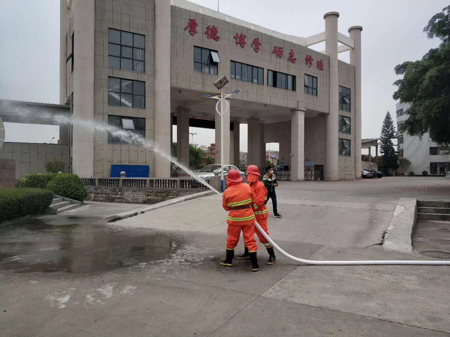 为加强校园安全管理,进一步普及安保人员消防安全知识,提高安保人员突发火灾应变能力。2020年4月4日,石狮市保安服务公司组织驻石狮市第八中学保安员开展开学前消防安全演练活动。