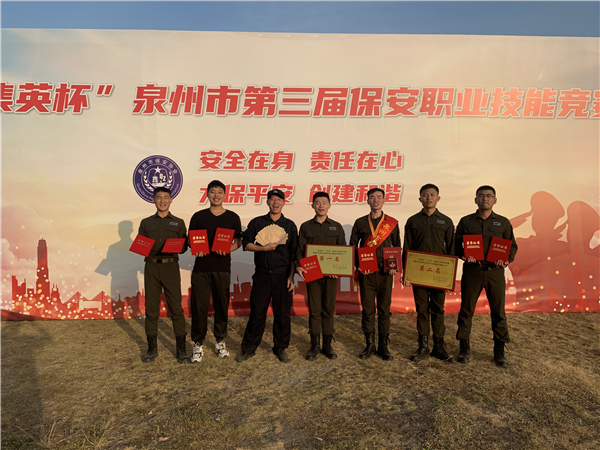 11月27日,由泉州市公安局、泉州市总工会、泉州市人力资源和社会保障局联合主办,泉州市保安协会和泉州市保安行业工会联合会承办的“集英杯”第三届泉州市保安员职业技能竞赛,在泉州市公安局人民警察训练学校圆满闭幕。泉州市集英保安守押有限公司代表队经过为期二天的角逐,在激烈竞争中脱颖而出,勇夺保安押运类竞赛项目团体总分第一名、保安守护类竞赛项目团体总分第二名的佳绩。