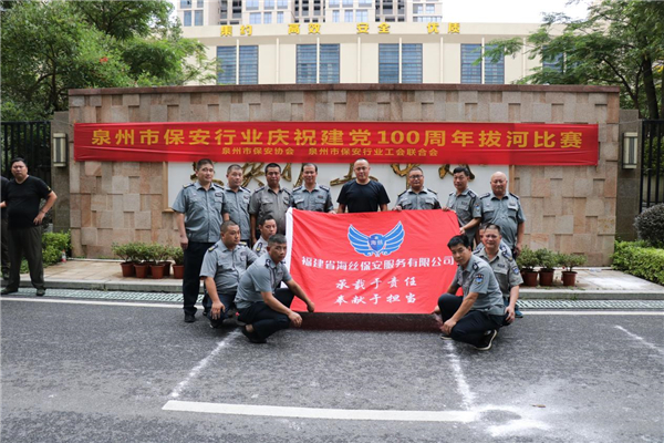 6月25日上午九点,由泉州市保安协会、泉州市保安行业工会联合会联合举办的泉州市保安行业庆祝建党100周年拔河比赛在集英大厦火热展开。福建省海丝保安服务有限公司领导高度重视,孙惠东总经理亲自带队参加。